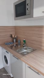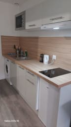 SER 5 is a comfortable studio apartment offering a modern and functional setting, ideal for a business trip, training course or family weekend. It has two single beds (90x200 cm) that can be pushed together to form a double bed, depending on your needs. You will enjoy a beautiful, modern living space with a 135 cm flat-screen TV, WiFi included, a dining area and storage space. Free parking is available on the street or on site (subject to availability).