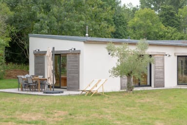 Dès votre arrivée, vous serez charmé par l’atmosphère douce et naturelle du lieu : grandes ouvertures sur l’extérieur, vue sur la campagne, terrasse en bois pour profiter des journées ensoleillées, et un intérieur soigné qui conjugue confort moderne et esprit campagne.