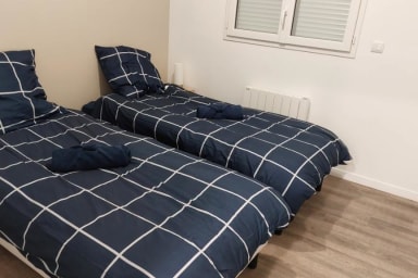 Profitez de 8 chambres individuelles offrant confort et flexibilité avec 8 lits simples (90x200 cm), modulables en lits doubles pour les couples ! La literie est de qualité et vous profiterez de rangements dans chaque chambre ! Situé dans un quartier résidentiel paisible, vos nuits seront douces et paisibles. Pour plus d'autonomie, vous trouverez 4 salles de douche avec WC privatives ou partagées, idéales pour les groupes !