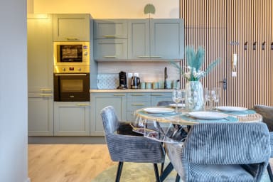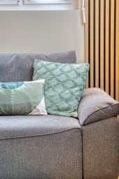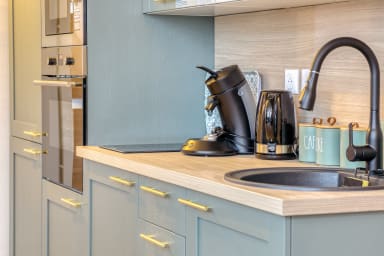 Ouverte sur le salon, la cuisine entièrement aménagée vous permet de vivre en parfaite autonomie : four, micro-ondes, réfrigérateur, cafetière Senseo, bouilloire et grille-pain sont à votre disposition pour préparer un café au réveil, un plateau apéro ou un repas complet. Tout est pensé pour que vous vous sentiez ici comme chez vous, le temps de quelques jours ou davantage.