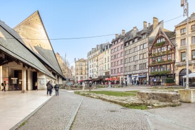 La place est souvent animée, avec des cafés et des restaurants qui invitent à la détente. Des marchés et des événements culturels s'y tiennent régulièrement, attirant à la fois les habitants et les touristes. Avec ses pavés, son ambiance pittoresque et ses souvenirs historiques, la Place du Vieux-Marché est un incontournable pour quiconque visite Rouen.