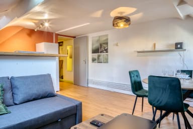 L’appartement ne dispose pas de stationnement privé, mais vous pourrez vous garer dans les rues alentours (selon la tarification en vigueur) ou au parking payant et couvert du Vieux-Marché, situé juste en face.