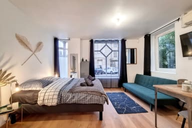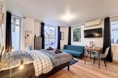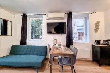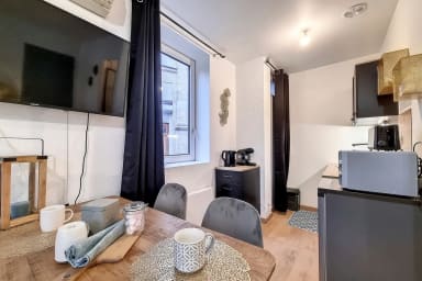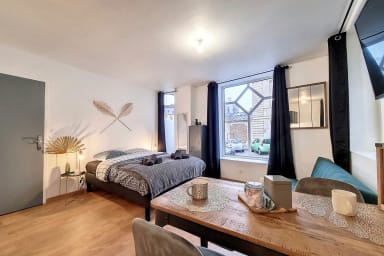 Le studio a été aménagé pour offrir un maximum de confort : décoration moderne, espace optimisé et ambiance chaleureuse. La partie nuit vous garantit de vraies nuits reposantes avec un lit double 140×190 cm. Besoin d’un couchage supplémentaire ? Le canapé convertible accueille 1 personne mais ce n'est pas un vrai lit. Il pourra vous dépanner pour un enfant mais il faudra bien penser à emmener votre linge de maison ( serviettes, couette, duvet, oreiller et linge de lit). Côté équipements, tout est prêt : cuisine fonctionnelle ( grille-pain, cafetière tassimo, bouiloire, micro-ondes, etc) et tout le nécessaire pour un séjour sans contraintes. La salle d’eau dispose d’une douche et de WC. Vous apprécierez également la smart TV et la connexion WIFI !